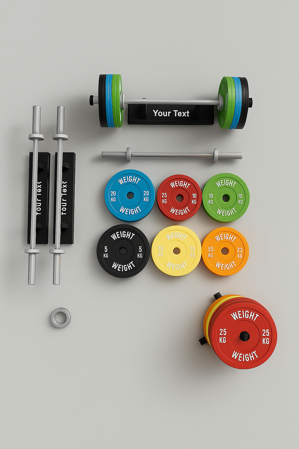 Scegli tu come montarlo, combinando i dischi colorati in base al peso che vuoi “caricare” per creare la configurazione che ti rappresenta di più.