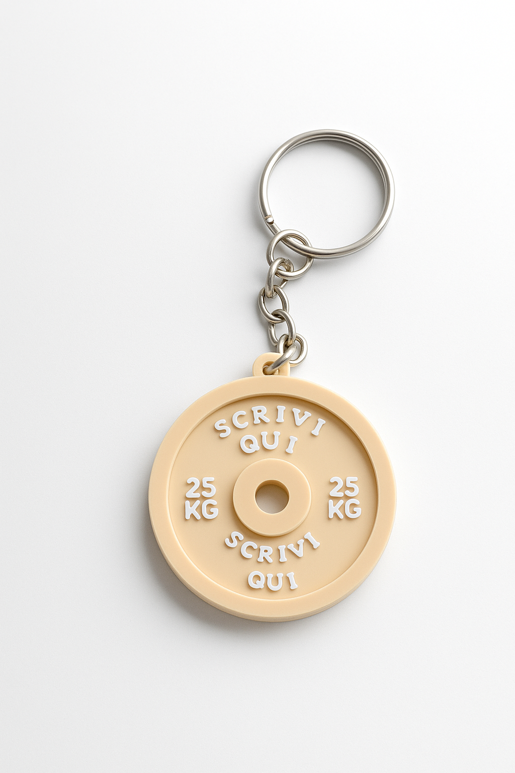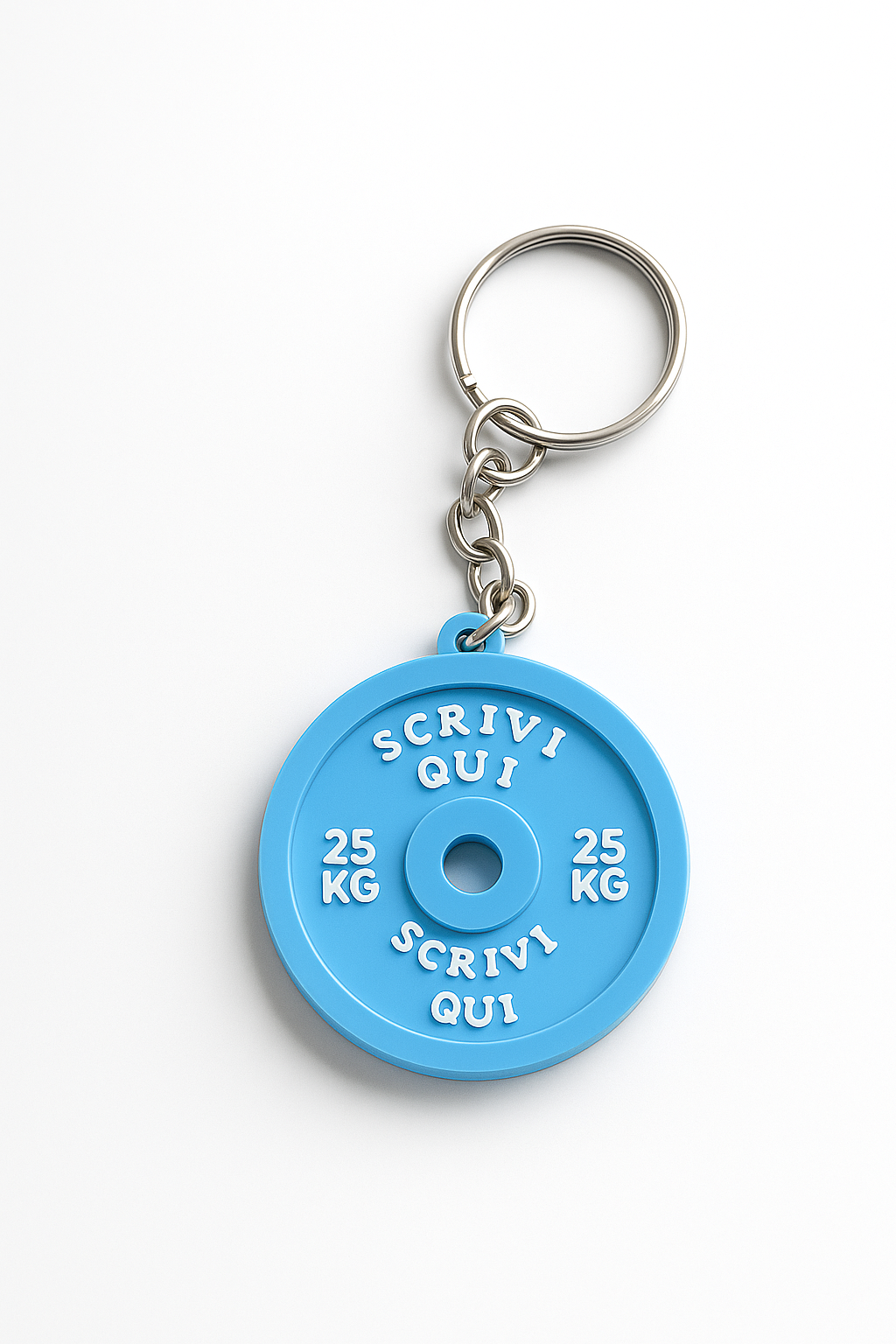 Questo portachiavi a forma di mini disco da palestra è il dettaglio perfetto per chi vive l’allenamento come uno stile di vita. Robusto, originale e personalizzabile con il tuo testo, ti accompagnerà ogni giorno per ricordarti di puntare sempre ai tuoi obiettivi.